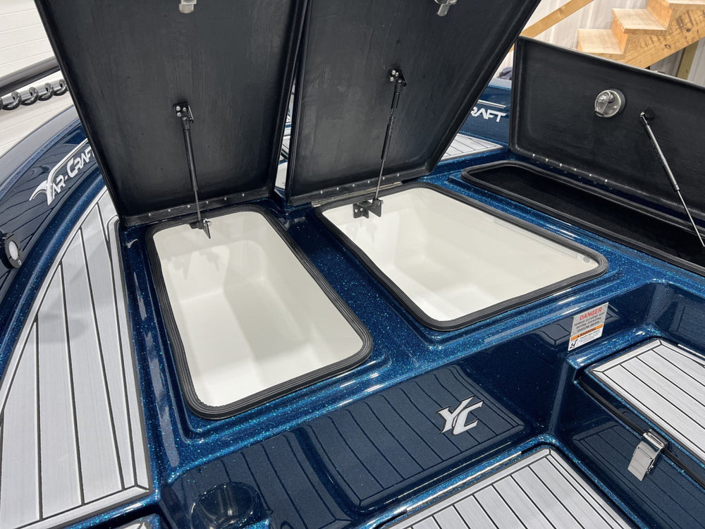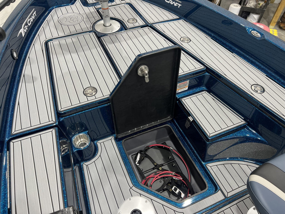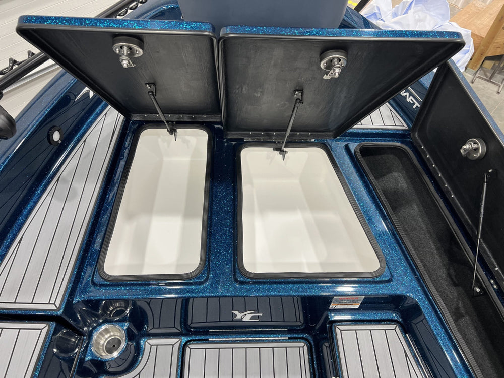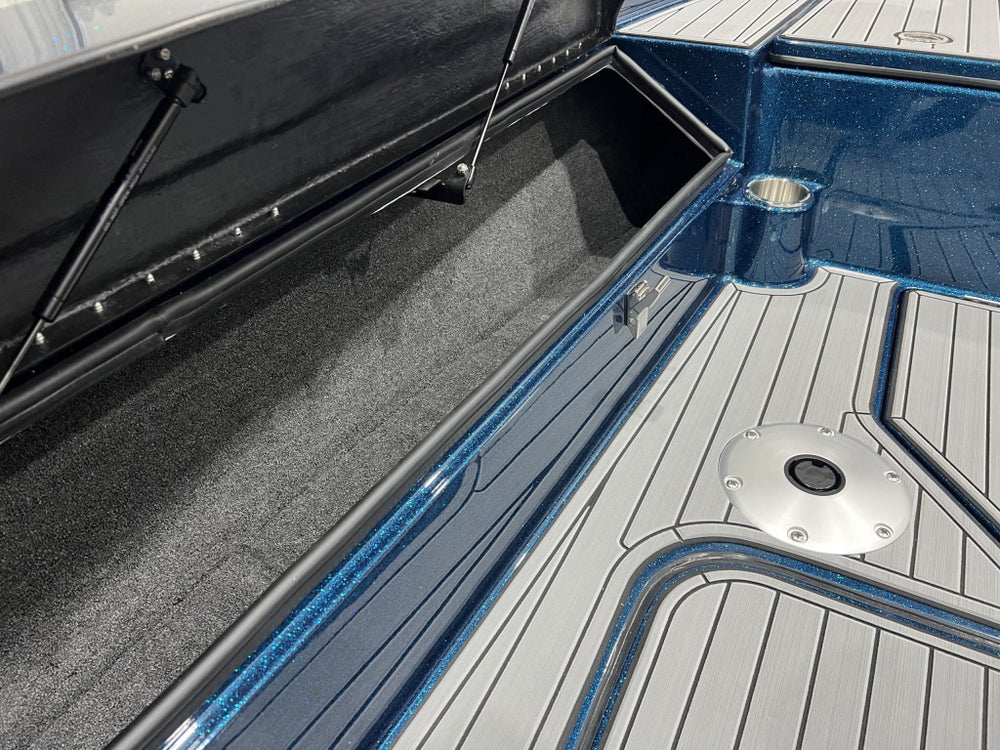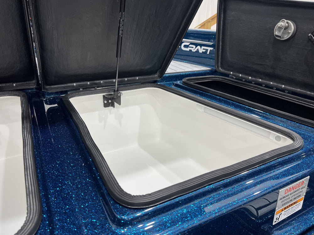 Platformă spate de lansare, cu spațiu de depozitare iluminat și livewell de 23 gal (≈ 87 litri)